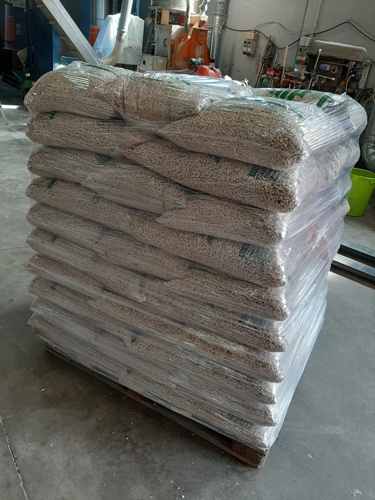 Il pellet viene confezionato in sacchi da 15 Kg e stivato in pedane